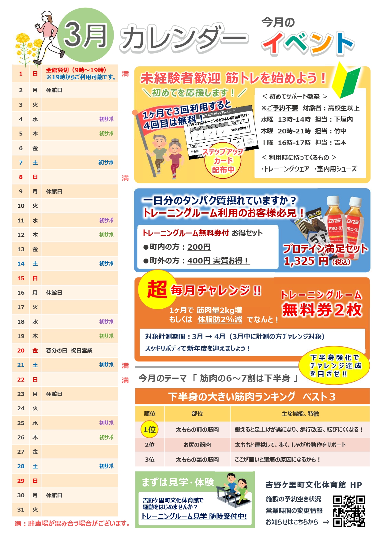 吉野ヶ里町文化体育館、3月のおすすめイベント情報をお知らせします。