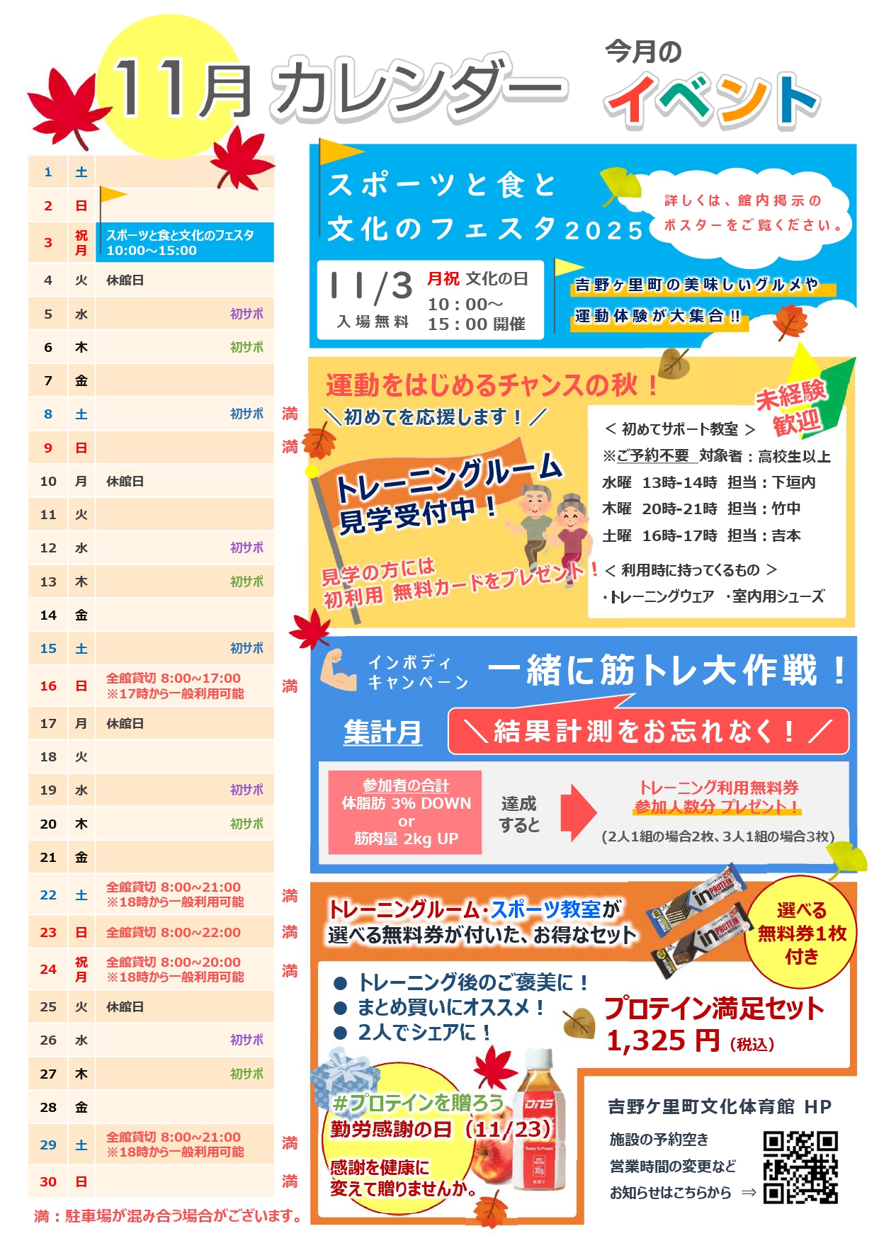 吉野ヶ里町文化体育館、11月のおすすめイベント情報をお知らせします。